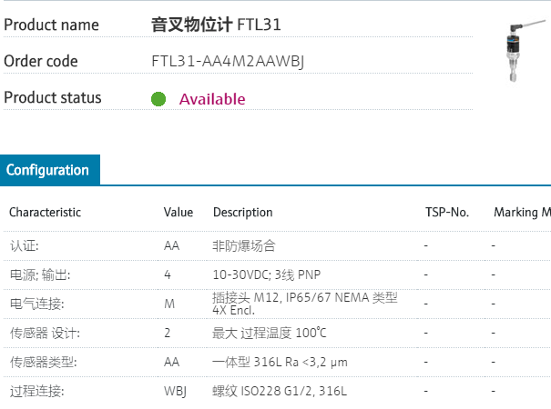 振動式限位檢測Liquiphant FTL31特點: