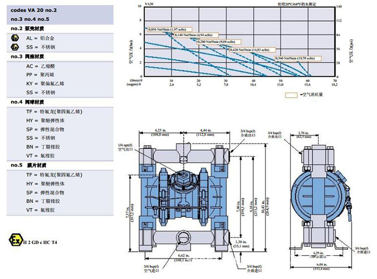Buna-N, Santoprene, Stainless Steel, Hytrel, PTFE, Viton