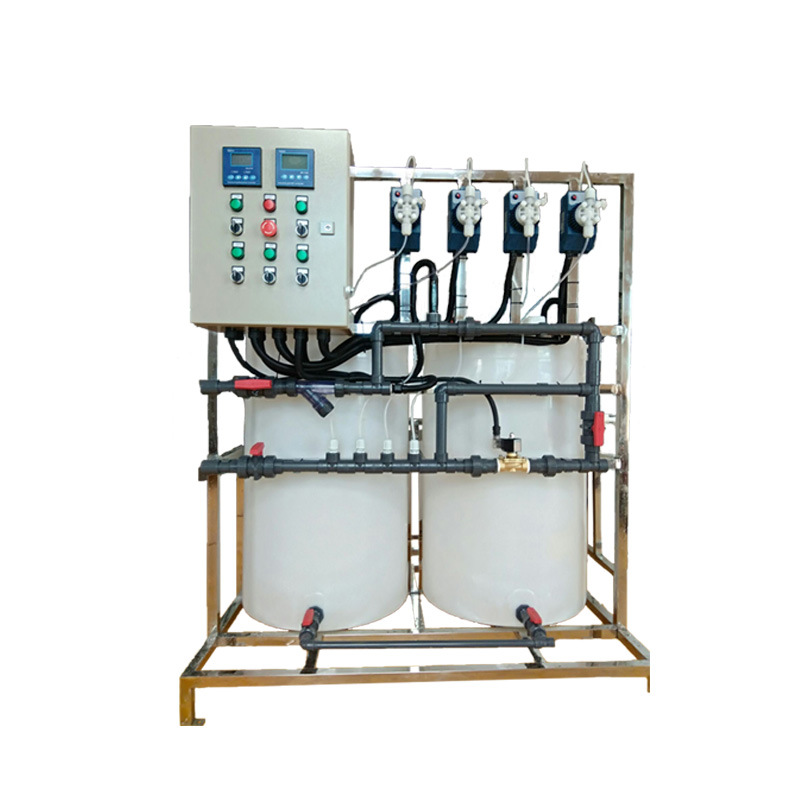 本裝置主要包括藥液溶配系統,計量投加系統、安全系統和控制系統等部分。