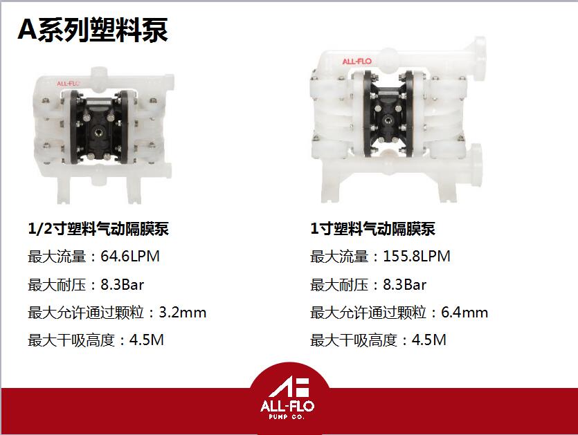 流量:64.4LPM 液體進(jìn)出口尺寸:1/2"NPT進(jìn)出口 出口壓力:8.3BAR 外殼材質(zhì):PP 隔膜材質(zhì):四氟隔膜 輸送顆粒:3.2MM 吸程:干吸4.5M 重量: 4.1kg