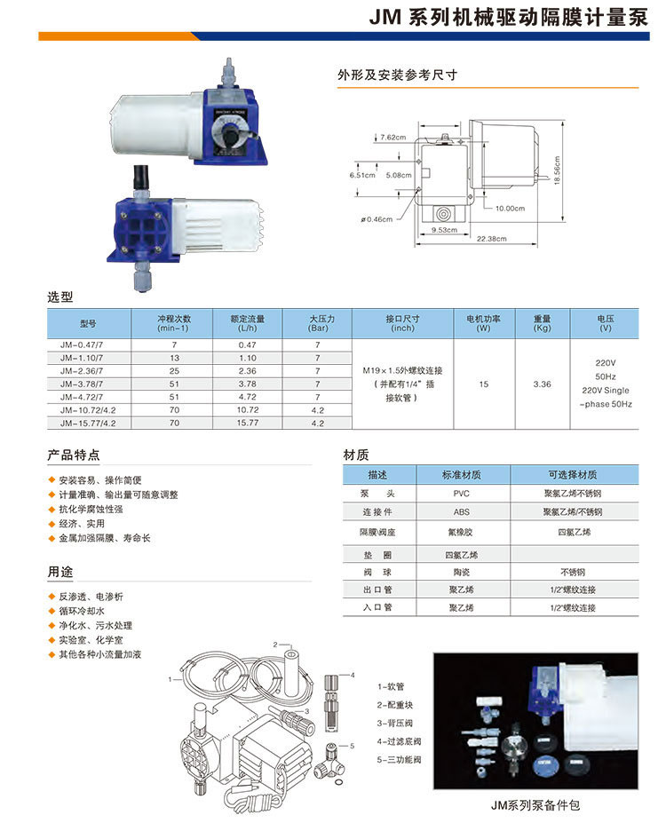 顏色分類: JM-0.47/7(PVC泵頭) JM-1.10/7(PVC泵頭) JM-2.36/7(PVC泵頭) JM-3.78/7(PVC泵頭) JM-4.72/7(PVC泵頭) JM-10.72/4.2(PVC泵頭) JM-15.77/4.2(PVC泵頭)