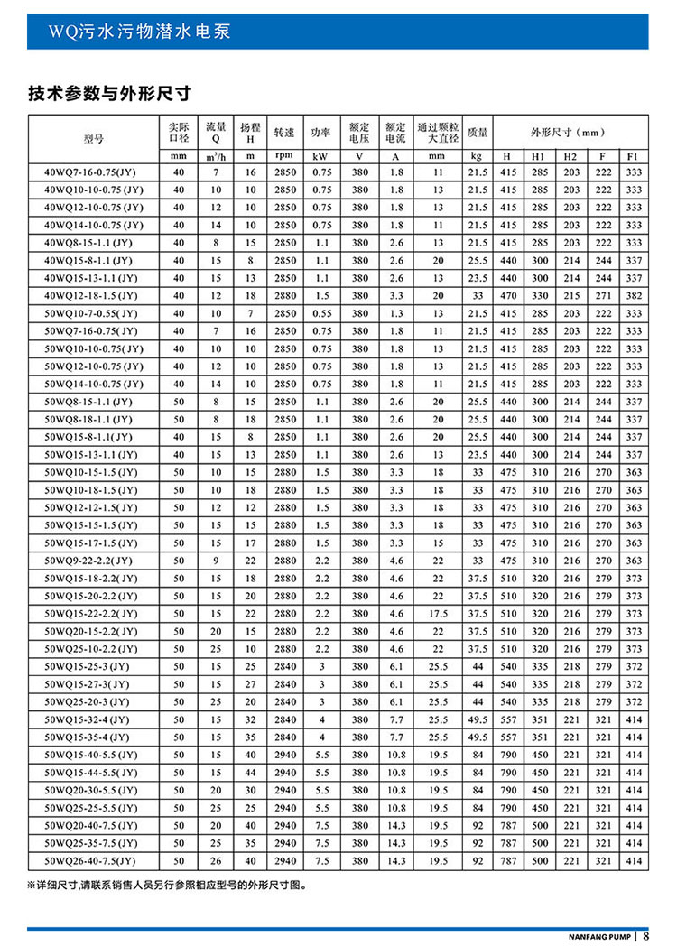 產(chǎn)品說明:南方WQ污水污物潛水電泵由電機(jī)與泵兩部分組成,兩者通過油室及機(jī)械密封組件隔開,分固定式自動(dòng)耦合安裝和移動(dòng)安裝。
