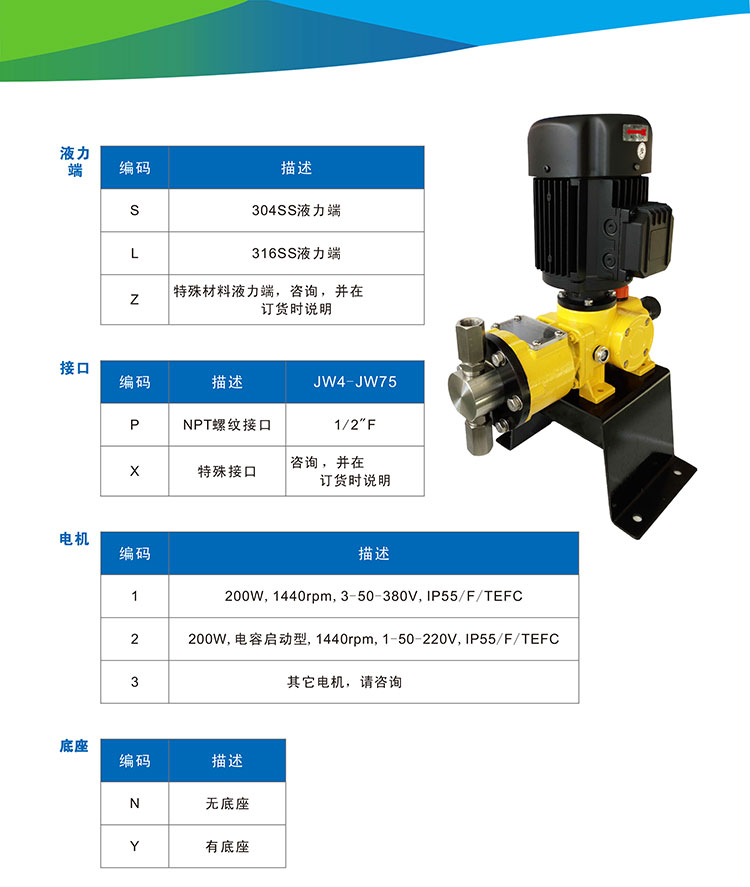 柱塞式計量泵JW7/3.9 高精度、高壓力、高溫度化工泵 防漏往復泵