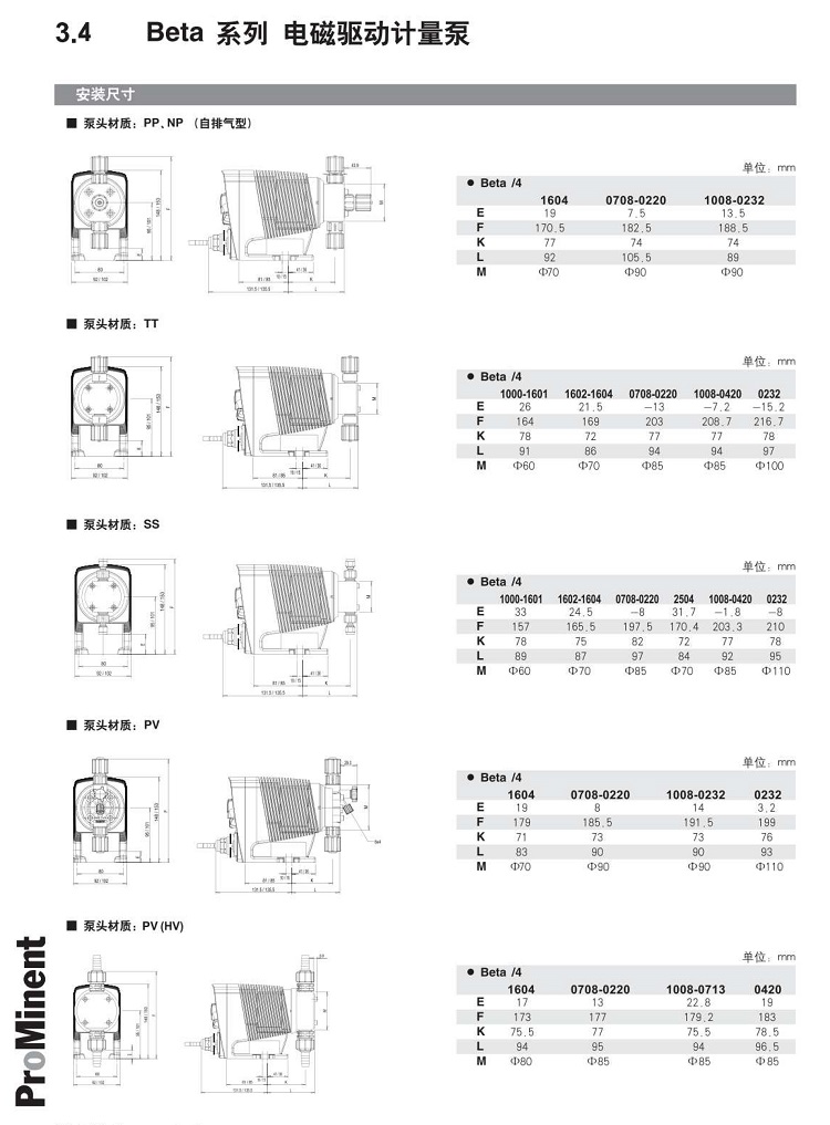 注:PPE,前兩位“PP”代表泵頭材質(zhì),后一位“E”代表密封件材質(zhì)。