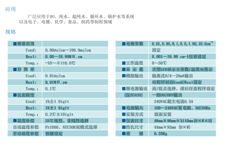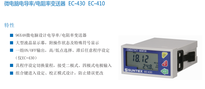 SUNTEX 微電腦電導(dǎo)率/電阻率變送器EC-430 EC-410
