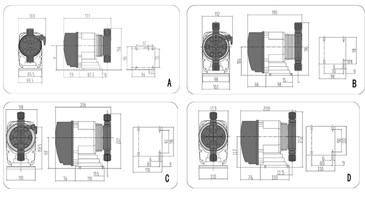 新道茨化學加藥計量泵DC系列產品圖紙: