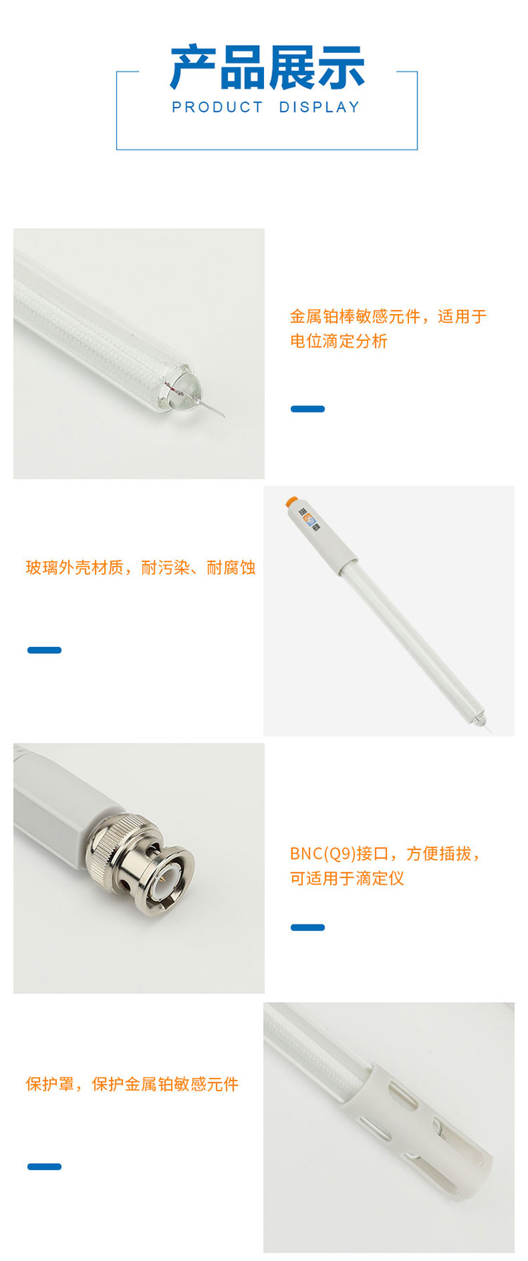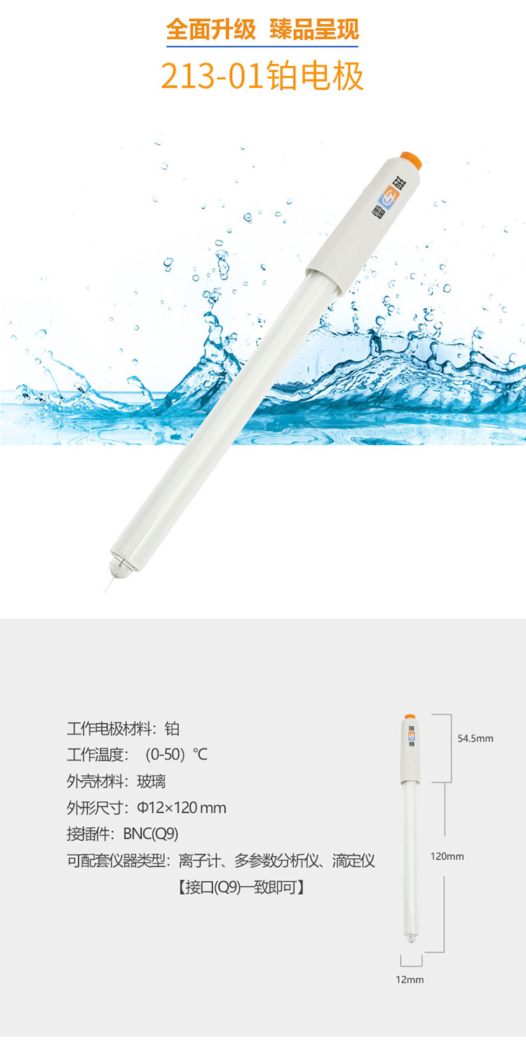 雷磁實驗室金屬電極 213-01型鉑電極傳感器探頭玻璃外殼材質
