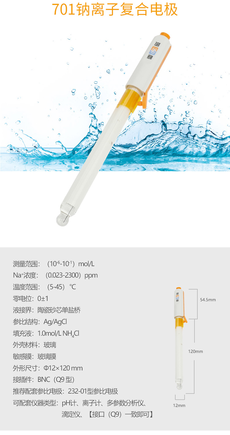701型鈉離子復(fù)合電極 雷磁實驗離子選擇性電極 傳感器探頭