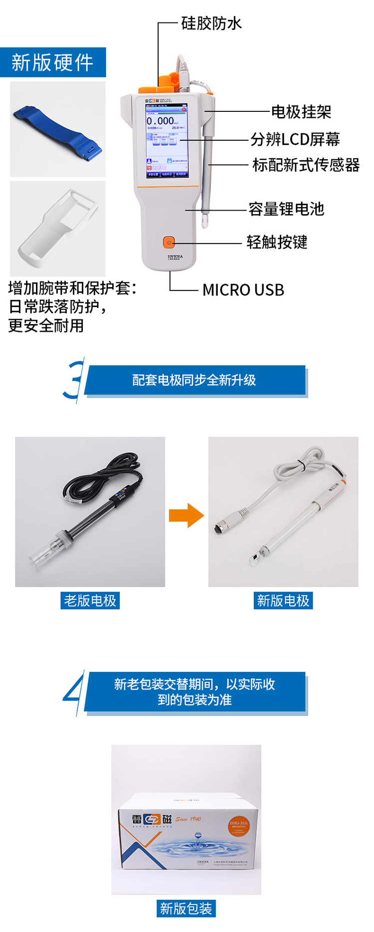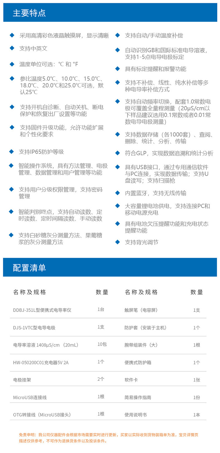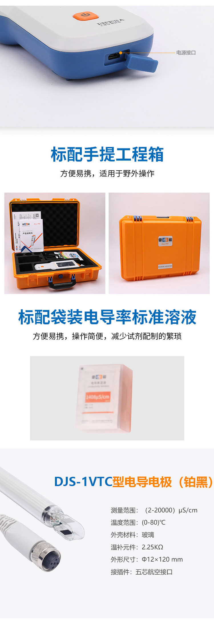 雷磁DDBJ-351L便攜式電導(dǎo)率儀彩色液晶觸摸屏中英文電導(dǎo)率測試儀