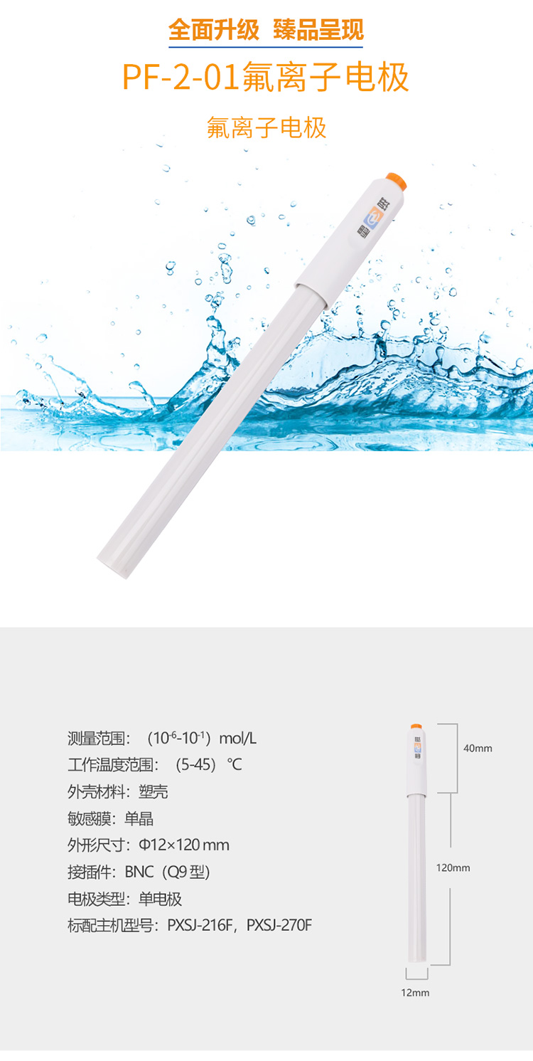 雷磁PF-2-01型氟離子電極 實(shí)驗(yàn)離子選擇性電極 有機(jī)玻璃外殼材質(zhì)