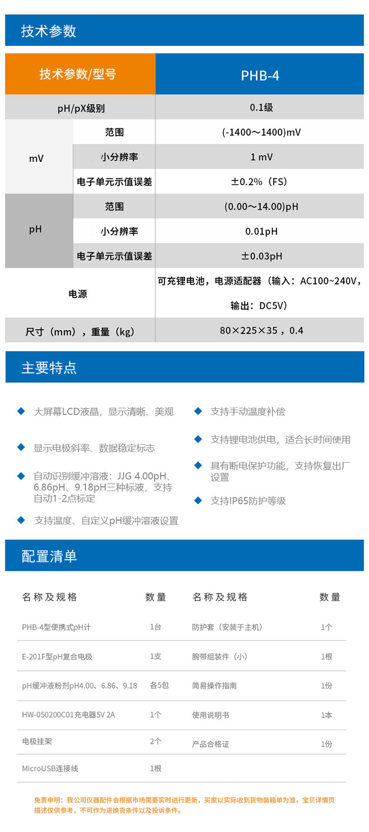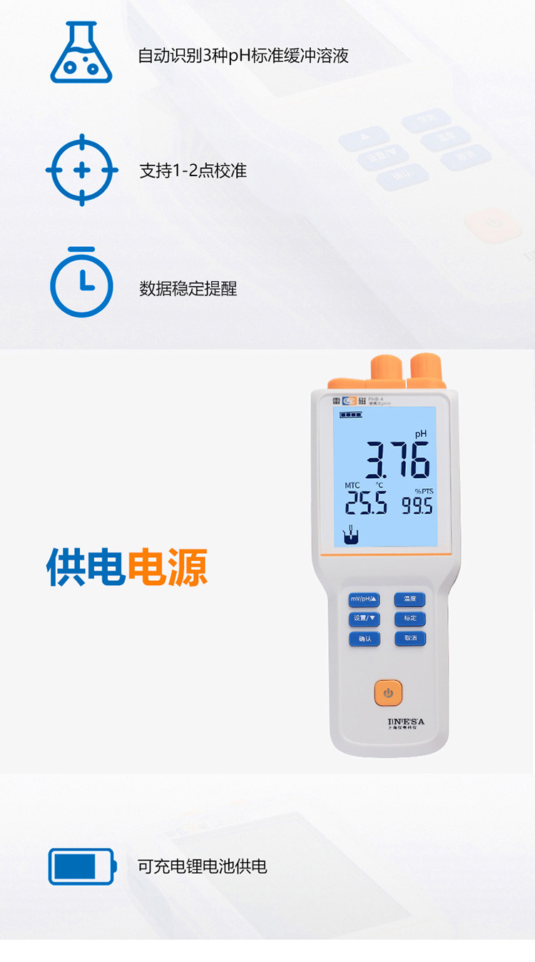 雷磁基礎款PHB-4型便攜式PH計標配套裝手動溫度補償液晶顯示