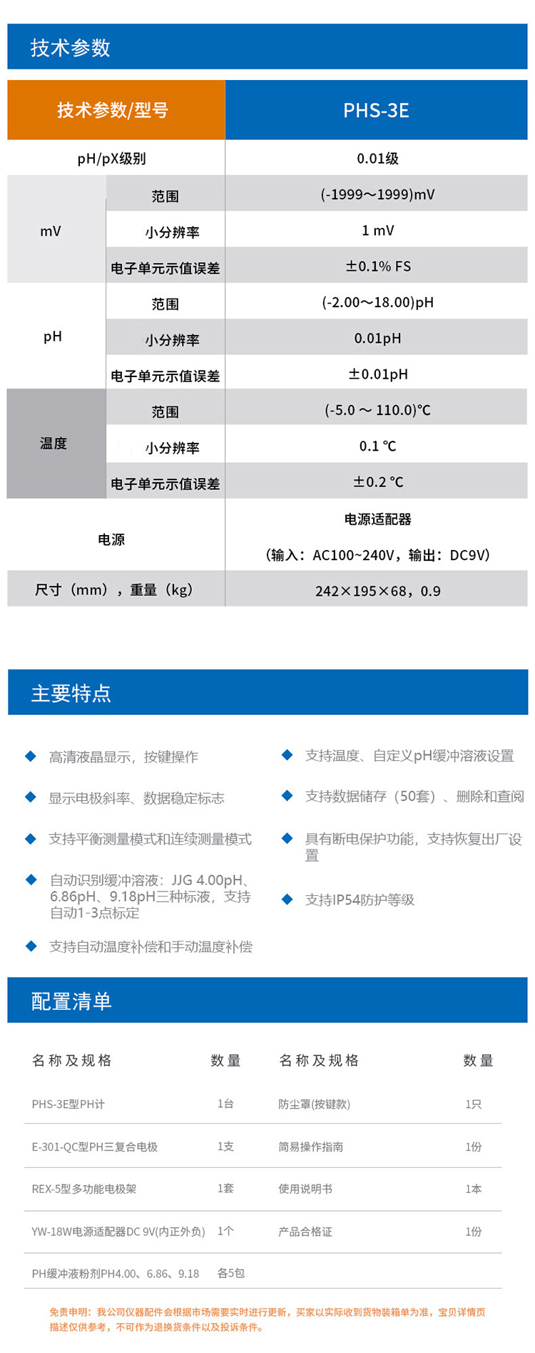 雷磁PHS-3E標配套裝pH計 實驗室臺式基礎款酸度測試儀器