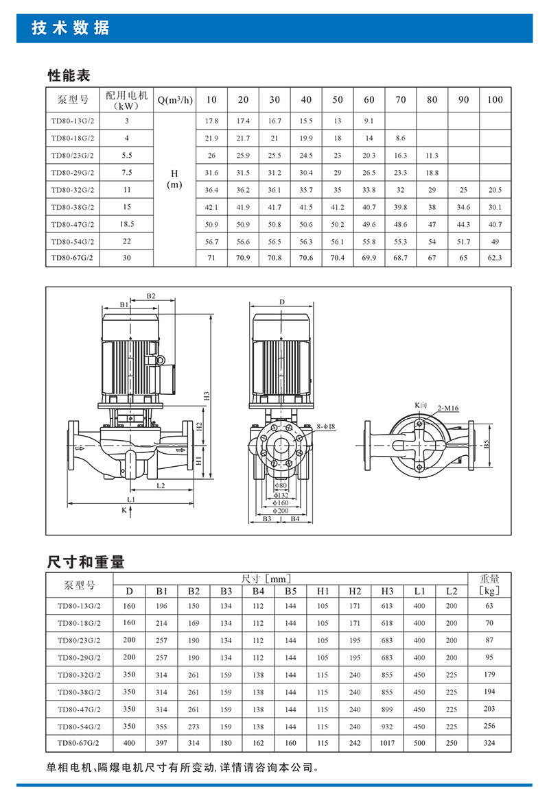 單級立式管道循環泵,泵進出水口在泵底同一直線上,產品設計為頂部可拉出的拆裝形式,其可以在不影響管路系統的情況下對泵進行維修。