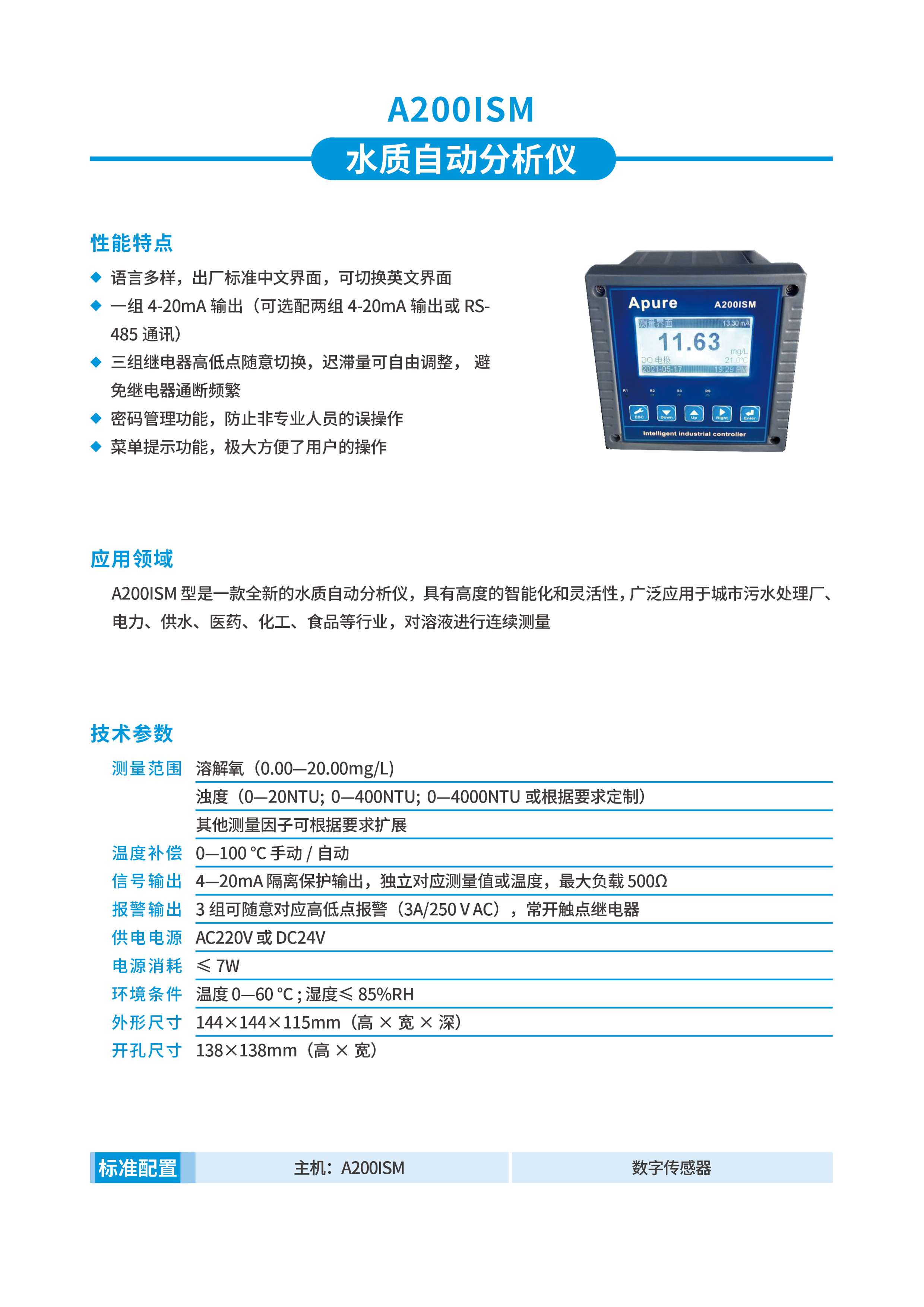 Apure水質(zhì)自動分析儀A200ISM臺式溶氧測試儀濁度檢測儀