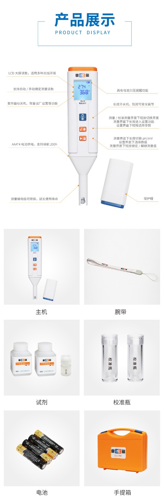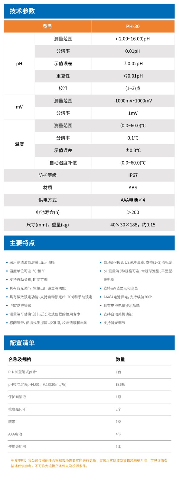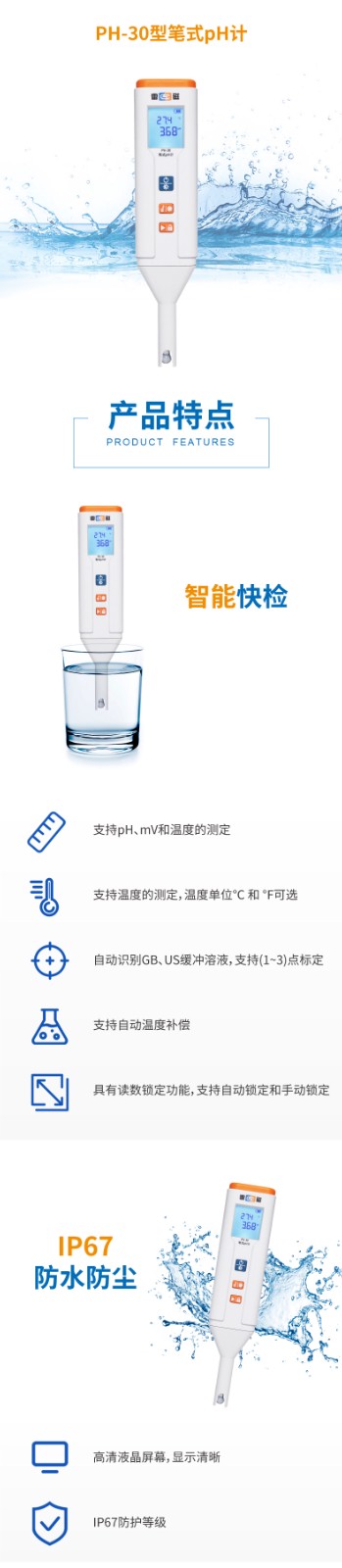 【雷磁】PH-30型筆式pH計(球泡型)水質檢測酸度計