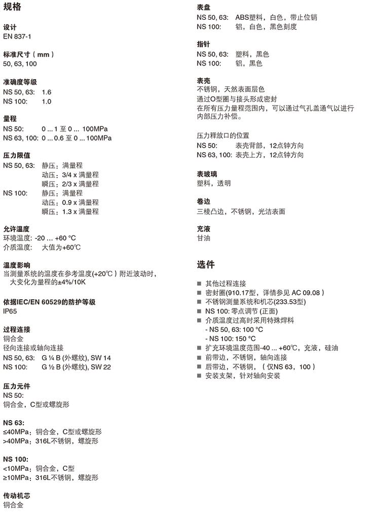 二、【耐震壓力表】耐震壓力表213.53.100功能特性: