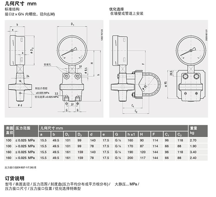732.51系列表的表圓外徑有:100mm,160mm,即732.51.100,732.51.160 差壓表。