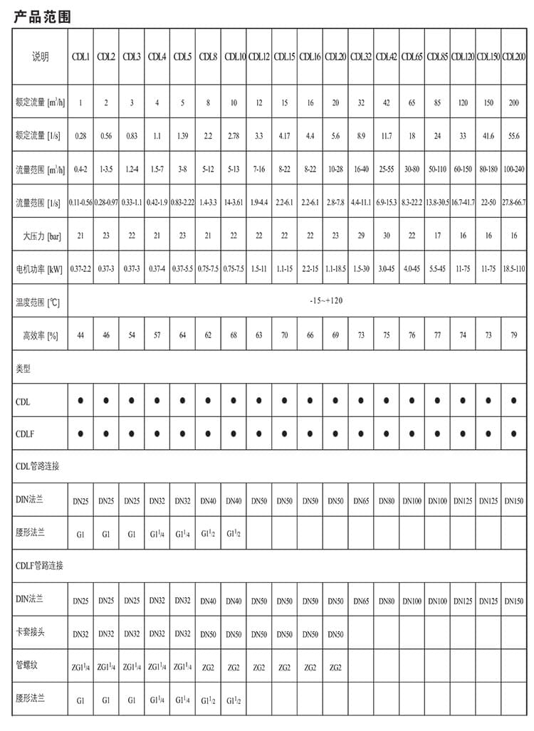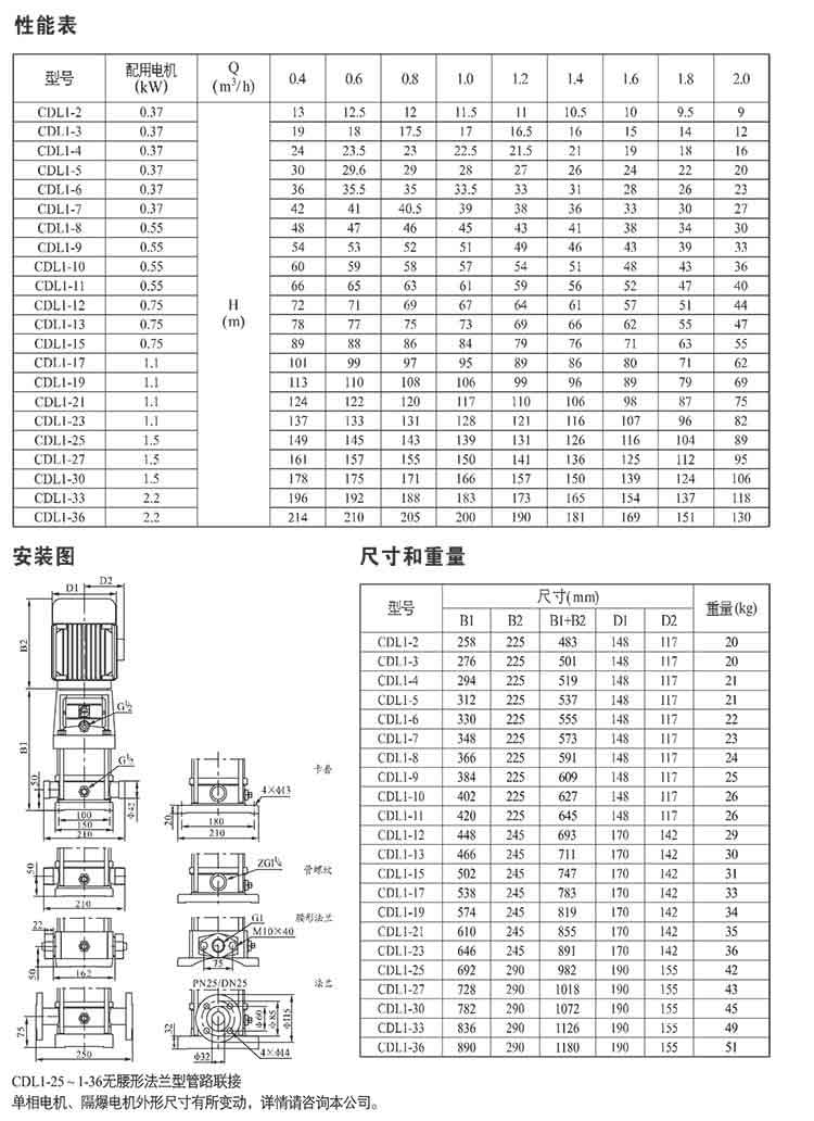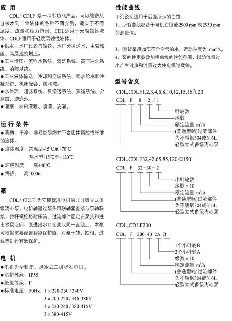 非自吸立式多級離心泵,電機軸通過聯軸器直接與泵軸聯接,葉輪導葉采用不銹鋼板沖壓焊接或不銹鋼精密鑄造制成,泵進出水口在泵底同一直線上(可配IEC或NEMA電機)。