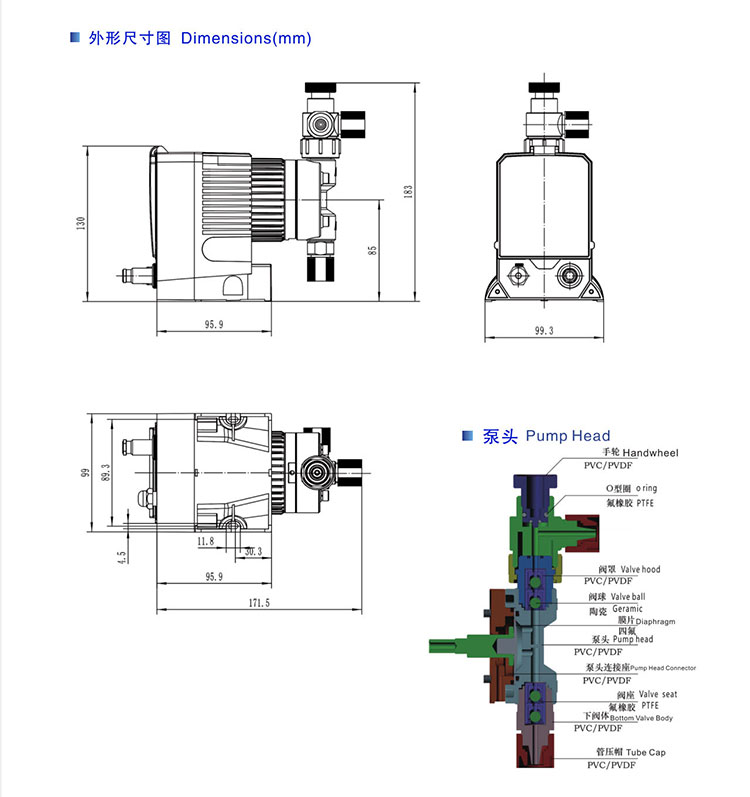 愛力浦JCMA電磁計量泵 擁有PVC、PVDF、304、316四種泵頭材質(zhì)