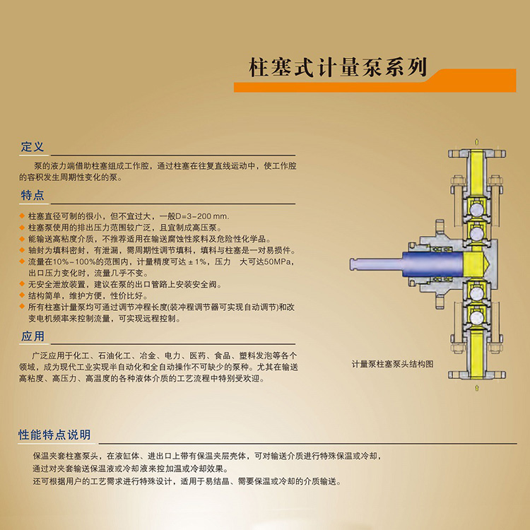 10、可根據工藝要求,泵頭可制成保溫、冷卻夾套型和電加熱型等多種特殊設計。