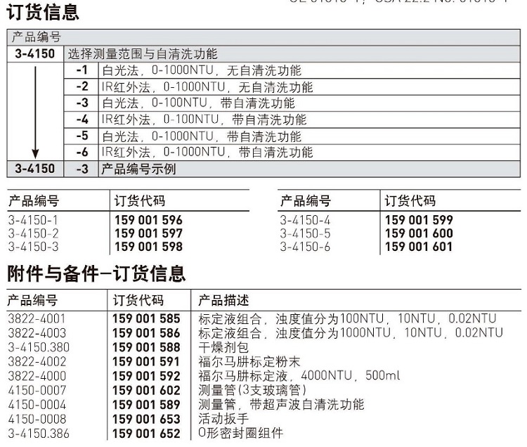 濁度儀3-4150-1 0-1000NTU,無超聲波自清洗功能